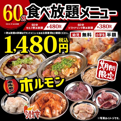【下町の牛】期間限定|焼肉ホルモン60分食べ放題コース
