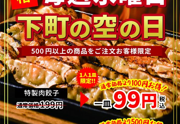 下町の空名北店の土、日、祝日の営業時間一部変更のお知らせ